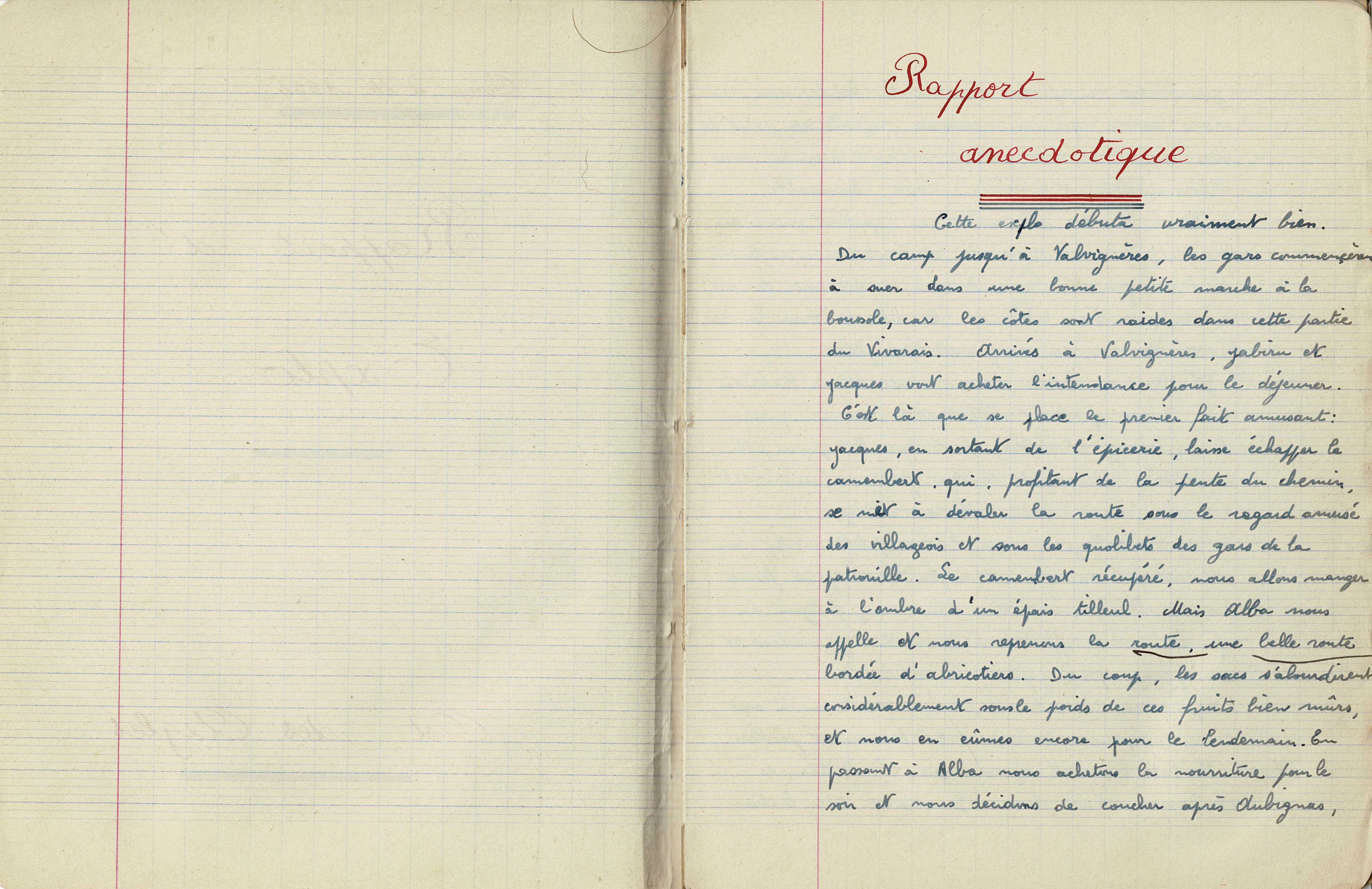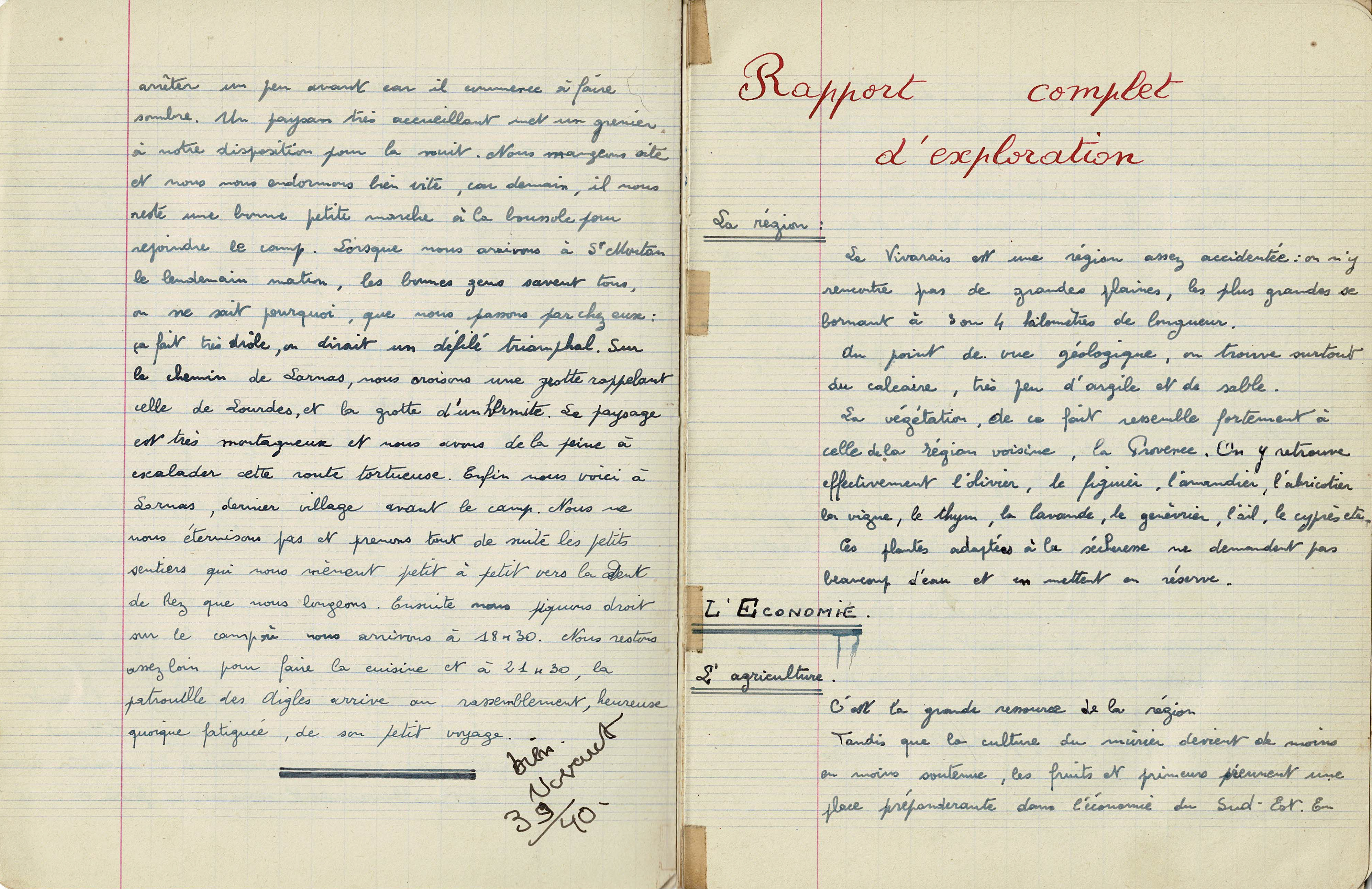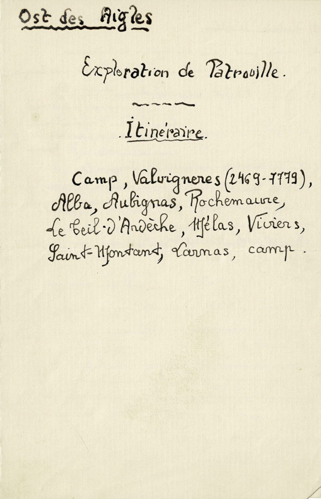 Voici reproduit intégralement le compte rendu d’Explo de la patrouilles des Aigles (Carnot) lors d’un camp en Ardèche été 1954. Vous y trouverez l’ordre de mission et les réponses apportées par les Aigles. Peut-être une inspiration pour des Explos à venir ?