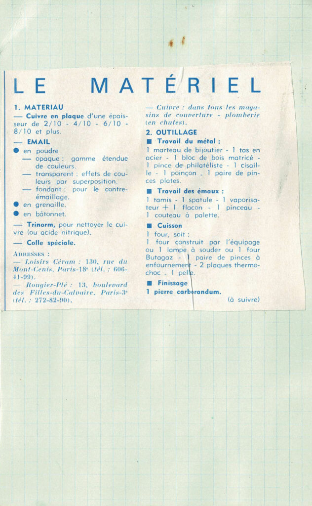 Ce mois-ci, les fiches de Henri BURIDAN « Travaux manuels » abordent des activités à redécouvrir tels qu’objets en paille, les bijous et émaux, le photogramme.
