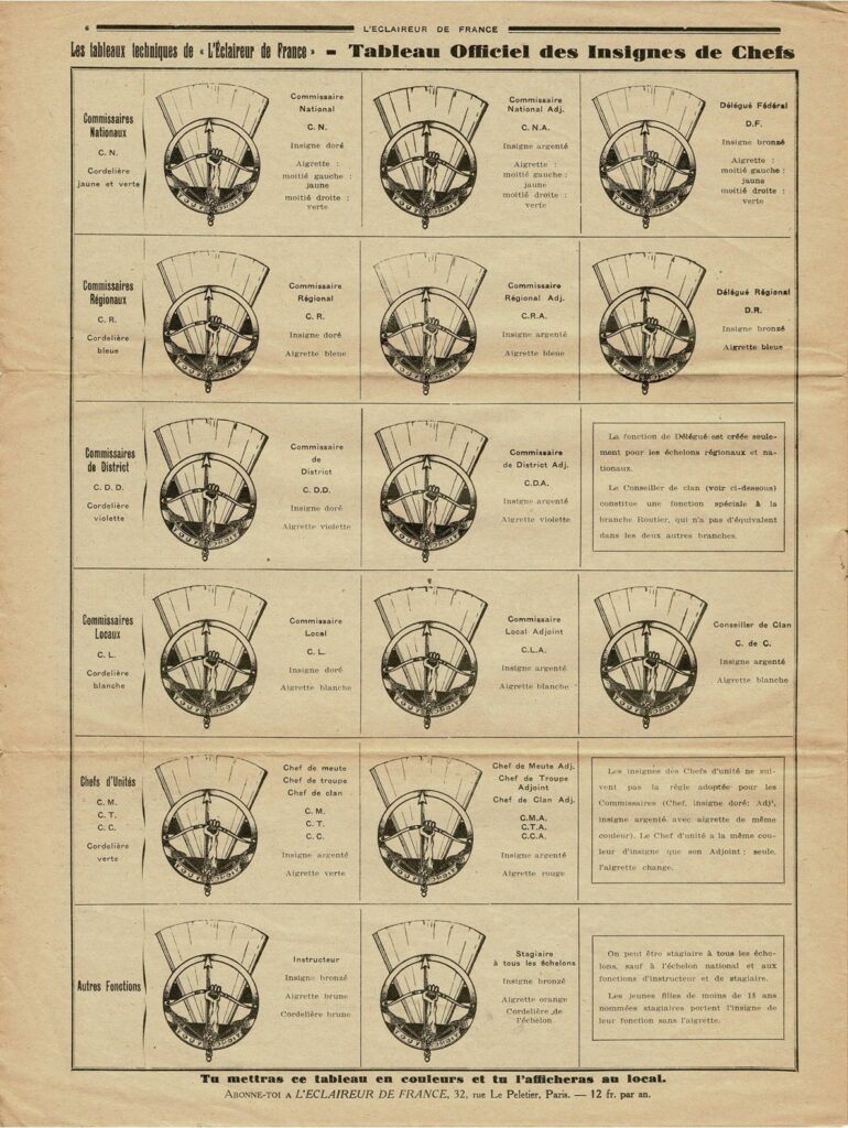 L’Eclaireur de France propose dans son numéro de janvier un tableau à colorier dans la série des « tableaux techniques ». Ce tableau ne montre que les insignes Eclaireurs De France. Et vous, sauriez-vous mettre les bonnes couleurs? La solution le mois prochain…