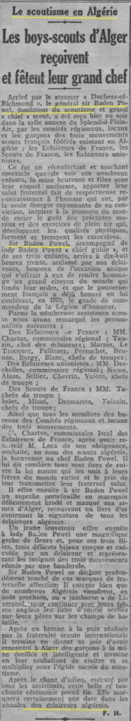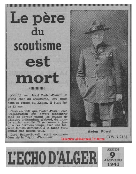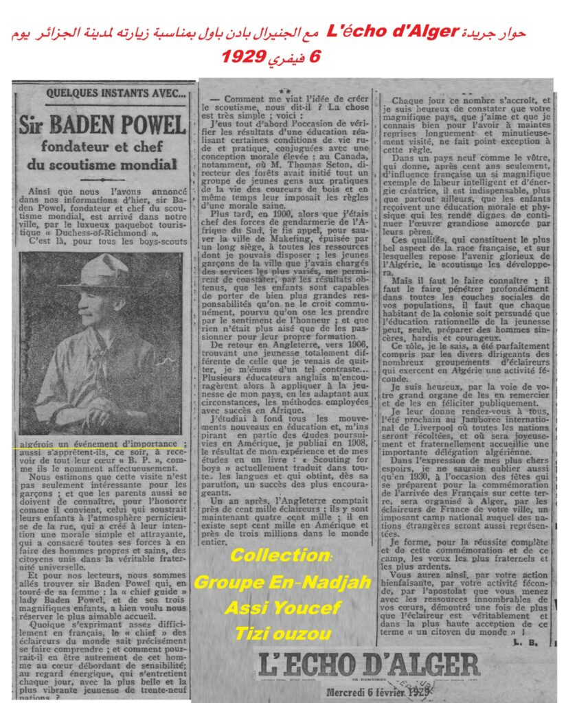 Ali Mouzaoui nous a transmis ces documents sur la visite de Baden-Powell en 1929 et les premiers contacts pris par Caquelin en 1942 en Algérie.