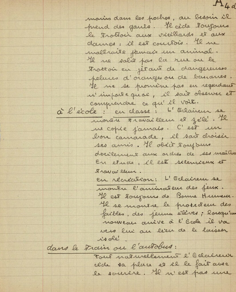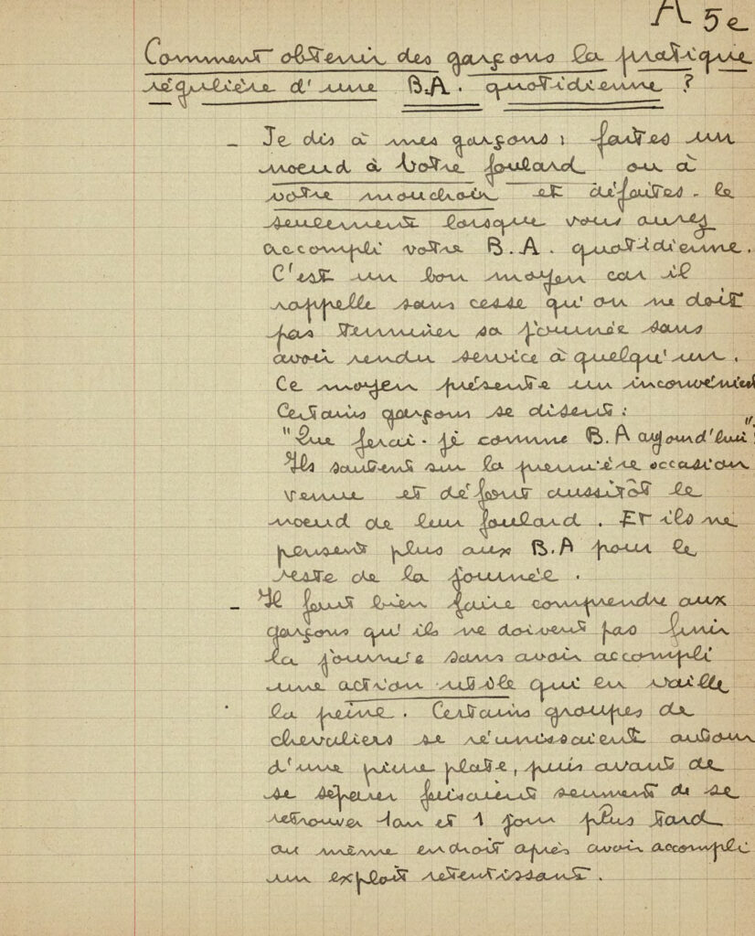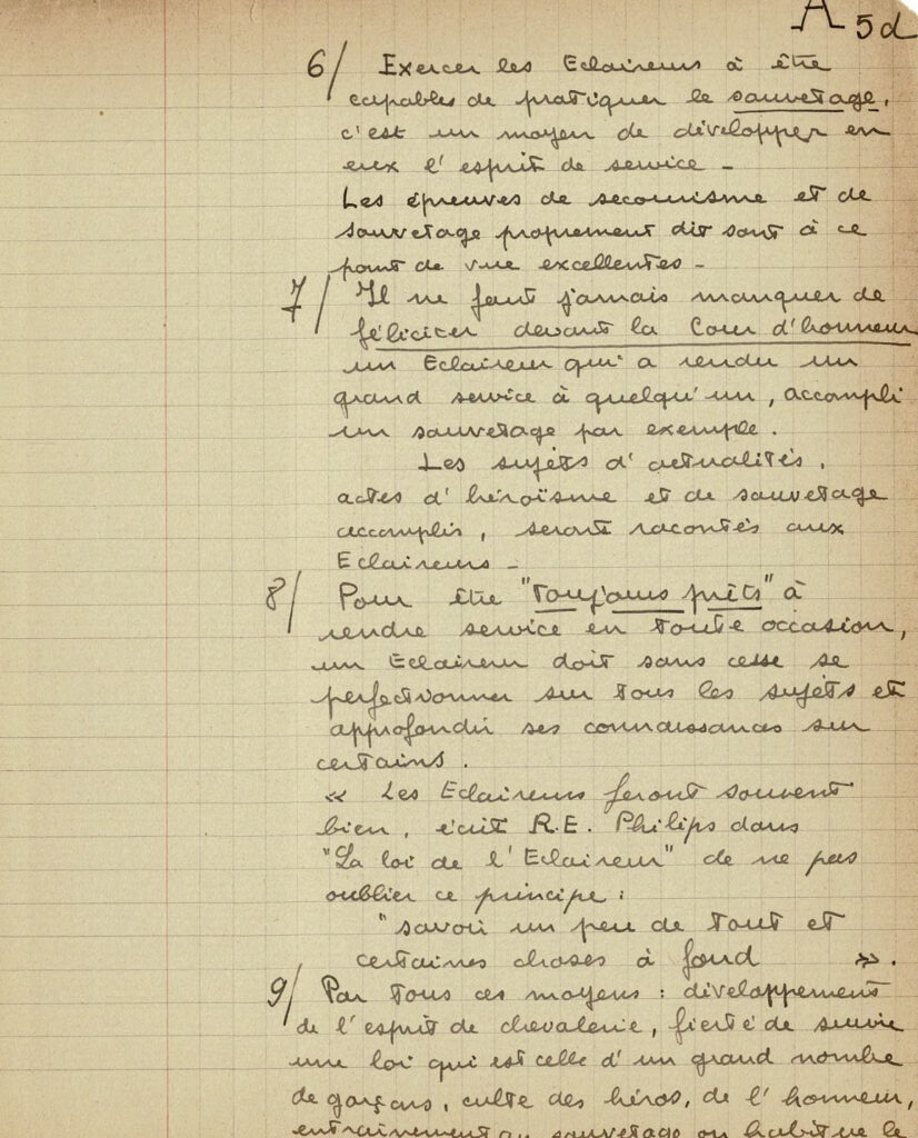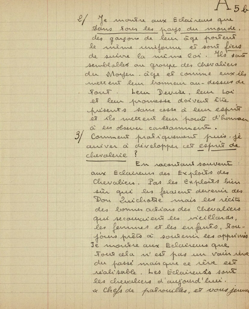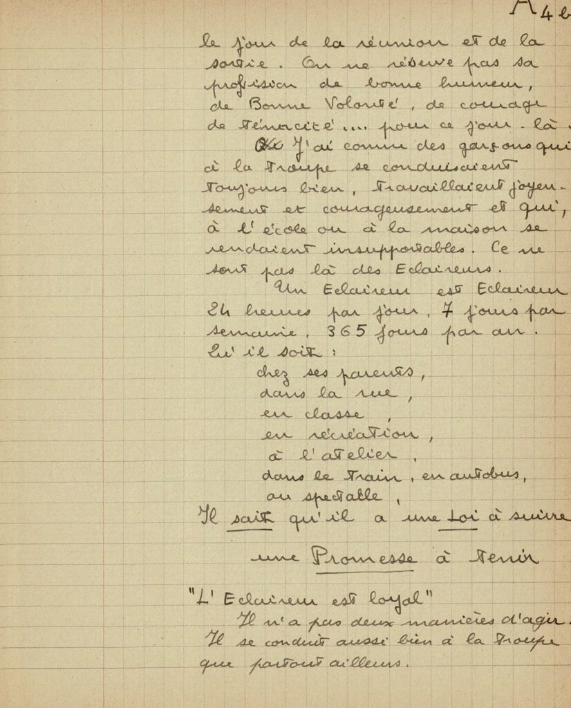 Voici la première partie du cahier « A » de Pierre Neveu qui nous renseigne sur les contenus de formation théorique d’un Cappy en 1938. Pour obtenir ses Tisons, il fallait plancher dur ! cette première partie correspond aux 3 premières questions posées dans la première série au futur « Chef Eclaireur ».